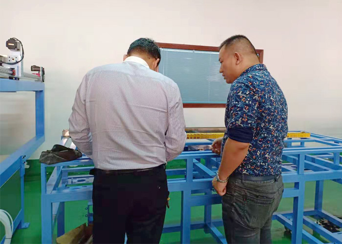 热烈欢迎安徽曹总来厂试喷打样 讨论规划喷涂方案